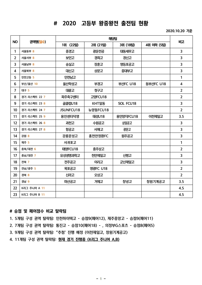2020 °íµî¸®±× ¿ÕÁß¿ÕÀü Âü°¡ÆÀ ÇöȲ